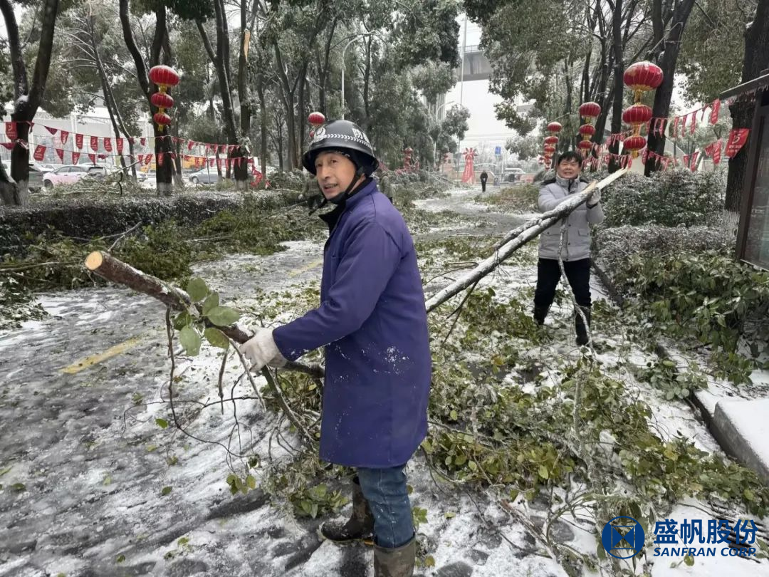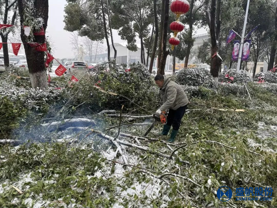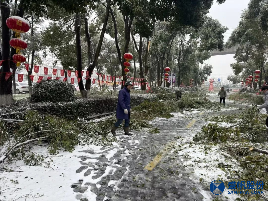 ꦍ自10月3日起,毕竟近日遭受到冻雨、降雪气象,盛帆项目内林木倒伏、枝条被压断,业务人员及家眷出行安全遭受到严重不良影响。